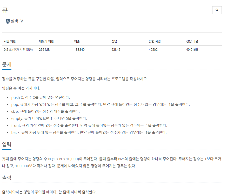 if(q.empty()) // 들어있는 정수가 없는 경우